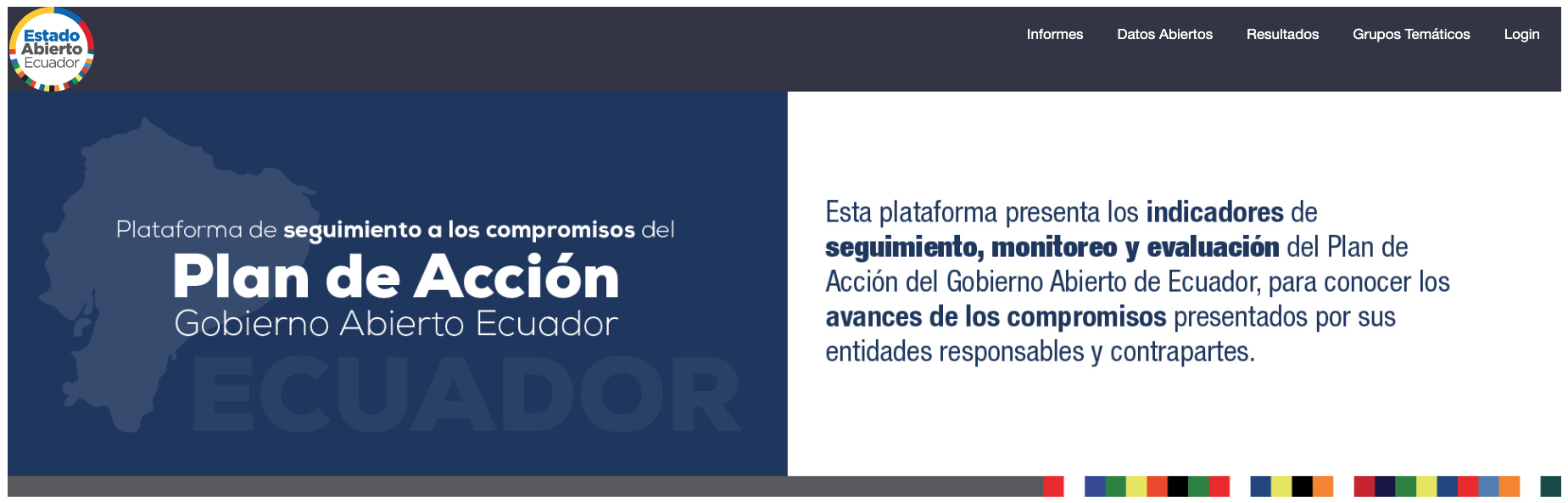 Estado abierto Ecuador presenta la Plataforma de Seguimiento a los Planes de Acción ecuatorianos. Este repositorio, que cuenta con los estándares de la Alianza para el Gobierno Abierto, OGP, contiene la información relacionada con los compromisos de los planes, así como la evidencia de sus avances.
